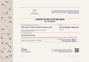 Akreditavimo pažymėjimas Nr. LA.269-01 pagal standartą LST EN ISO/IEC 17025:2018