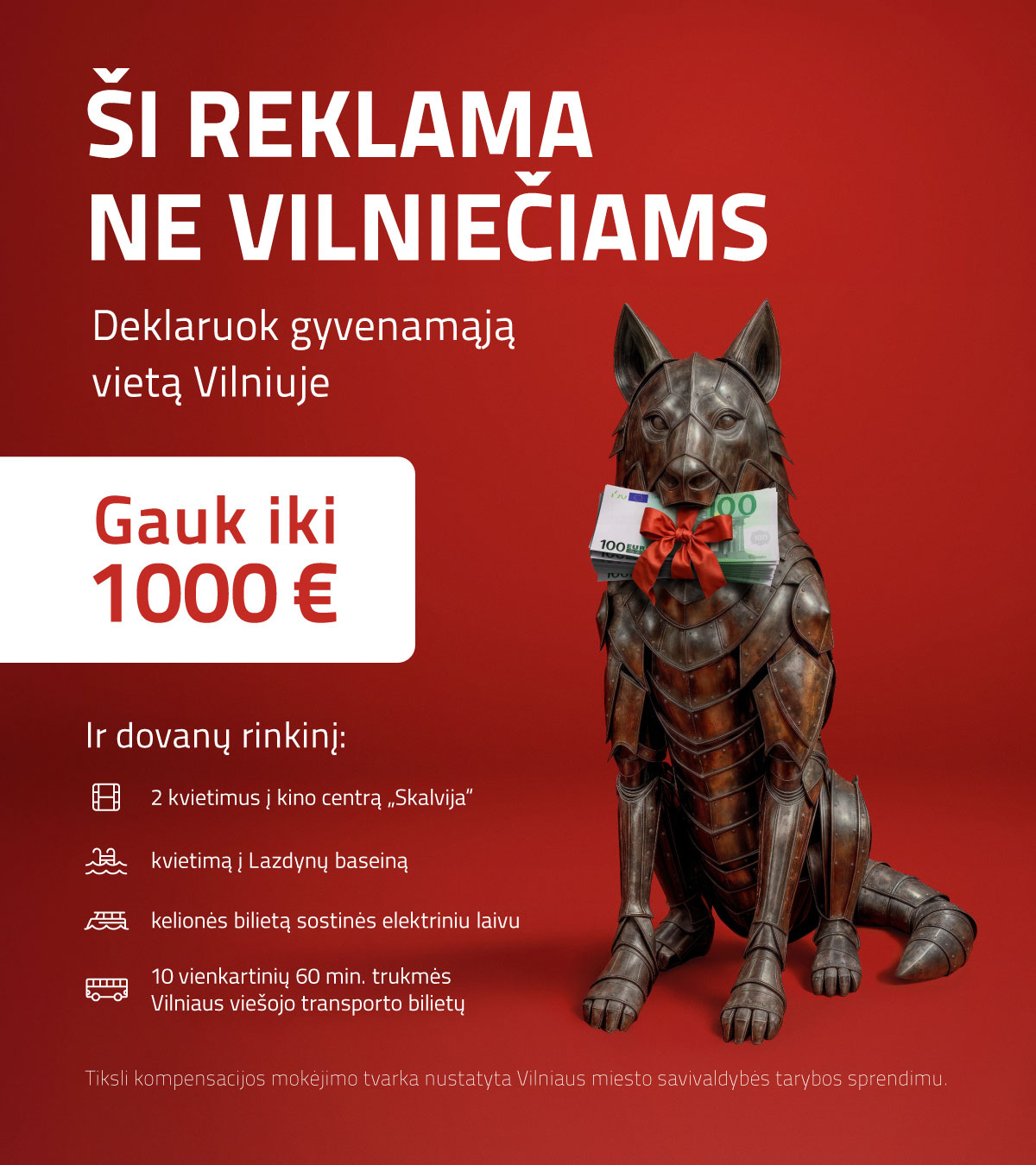 Iki 2025 m. gruodžio 31 d. visi naujai Vilniuje prisiregistravę ir specialią paraišką užpildę asmenys galės gauti dovanų.
